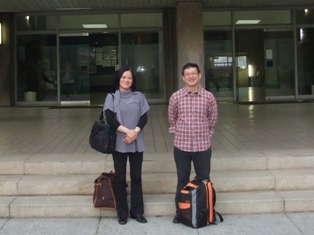 二人ともお世話になった音大の1号館の前で。この校舎ともまもなくお別れですね・・・(T_T)